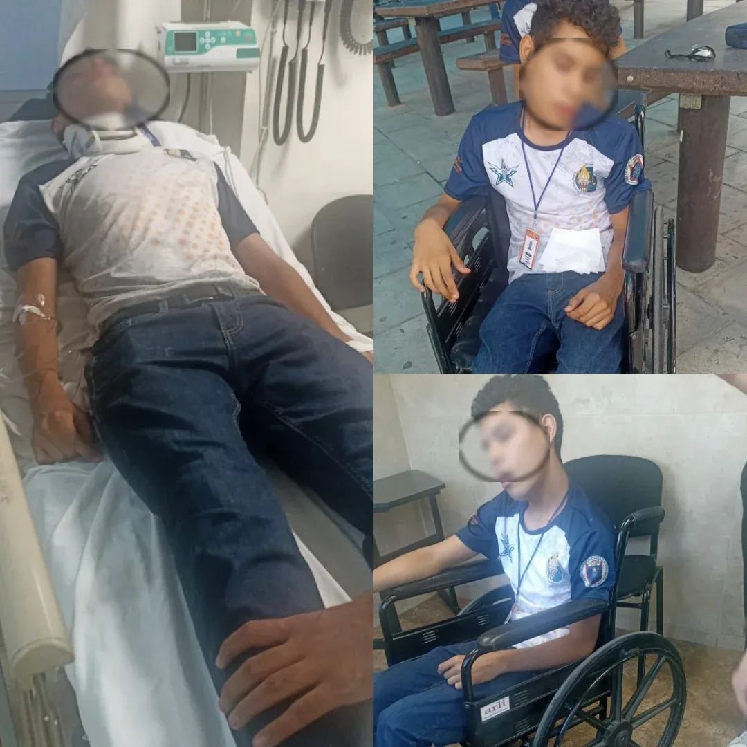 El estudiante fue trasladado al Hospital Universitario, donde es reportado con traumatismo craneal e inflamación del cerebro y una vértebra, según dijo su prima Marifer Leura.